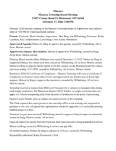 HomeTown Board Minutes 2026.02 Town Board Minutes 2026.02By Kathy Hemmesch / March 23, 2026 Download File Type: pdf File Size: 93 KB Categories: Town Board